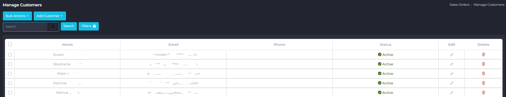 3. You can use the Search Bar or available filters, to refine your searches and return specific customer results (if needed)