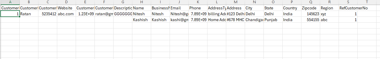 2. Open the sample file, and add all customer information to the CSV. Once done, save your changes: