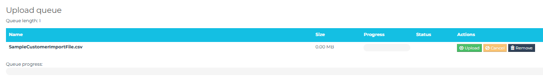 to upload the file. This will then be added to a queue to create the customers in your account: