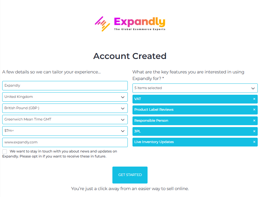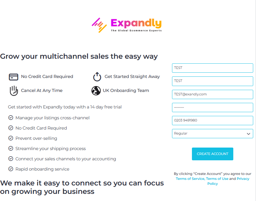 Please Note: If signing up for Expandly services only (VAT,RP,EPR), the account type you select will not matter. Once your trial period ends, your account access will be revoked to allow you to access the areas of the software required for the services you want to purchase.