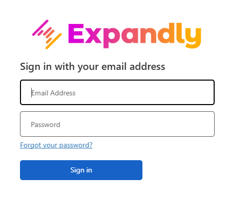 8. Congratulations! Your Expandly account is now set up and you will be able to log into the portal with your username (email address) and password: