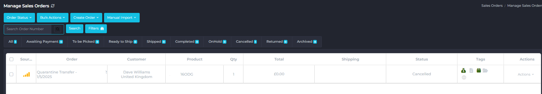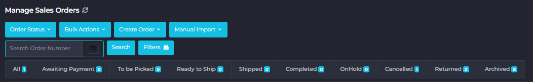 6. You can also use the search bar, or filters, on your Manage Sales Orders page, to refine you order results and easily find the order numbers you require: