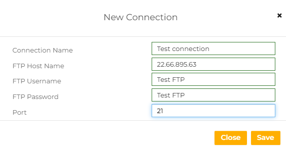Connection - select the connection. If you have not added a connection before, click , and on the New Connection popup, add your FTP or SFTP details, including; Hostname, Username, Password and Port Number. Click