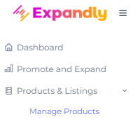 1. Click Products & Listings (left menu) and then Manage Products:
