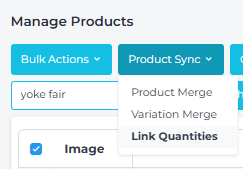 3. Click Product Sync and then select Link Quantities from the drop-down: