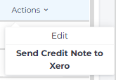 3. Click Actions (far right) and from the drop down, select Send Credit Note to Xero: