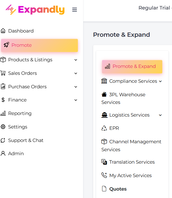 2. Click on Promote (left navigation menu) and on the Promote & Expand page, then click Quotes: