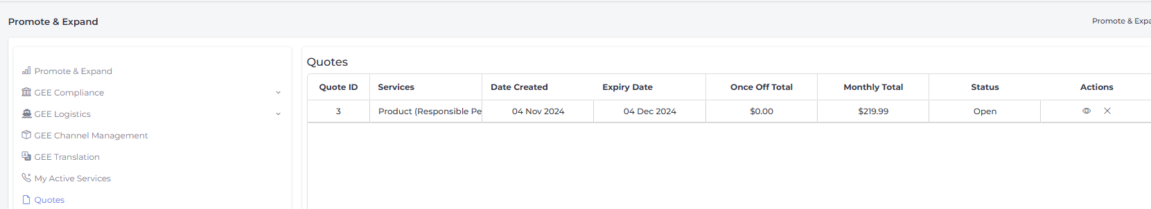 3. On your Quotes page, you will be able to view any quotes that have been created on your behalf: