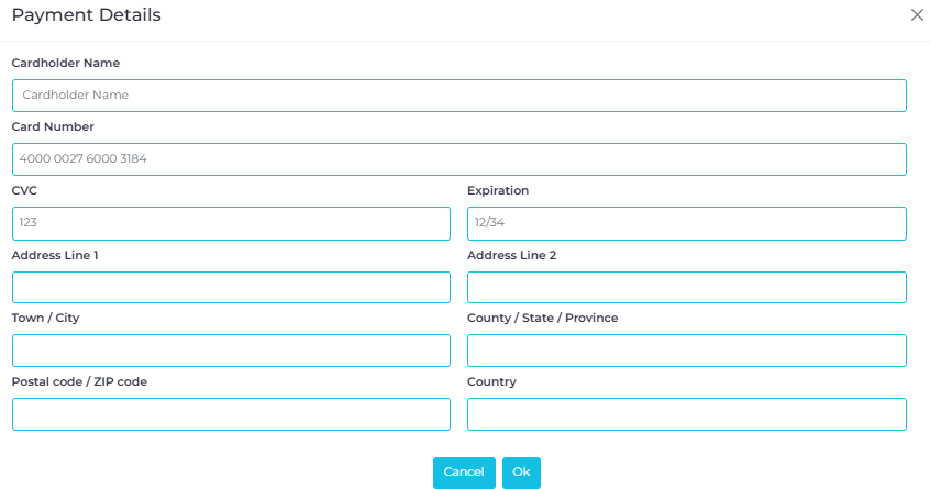 7. On the Payment Details pop-up, enter your card details and once done, click OK: