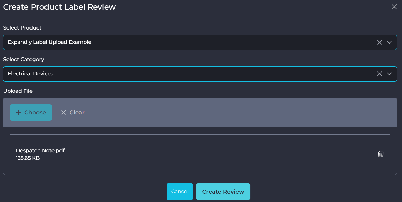 Please ensure that your products have been uploaded to Expandly. This is a crucial step, as products must be available in the portal before you can select them and upload the required label documentation for review.